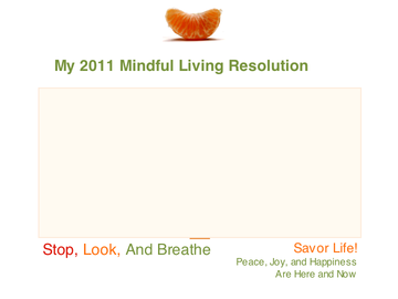 Start the New Year off with mindfulness. Make a serious pledge to yourself. Begin writing a Mindful New Year’s Resolution. This resolution is a promise to yourself, and putting it in writing will help you see clearly what you intend to achieve in the coming months. People who make resolutions are likely to be more successful in changing their behavior than people who do not.